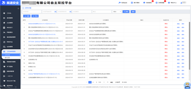 可根据需要及规则设定按月建立安全工作计划,为安全管理提供便捷的管理工具。